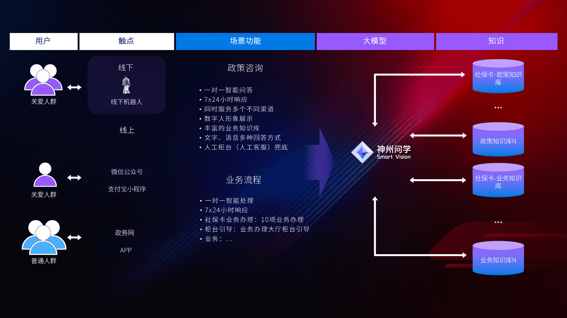 • 线上线下全覆盖:线上提供微信公众号、、支付宝小程序、、政务网、、、、app多种渠道,,,与线下机器人形成完整服务体系。。